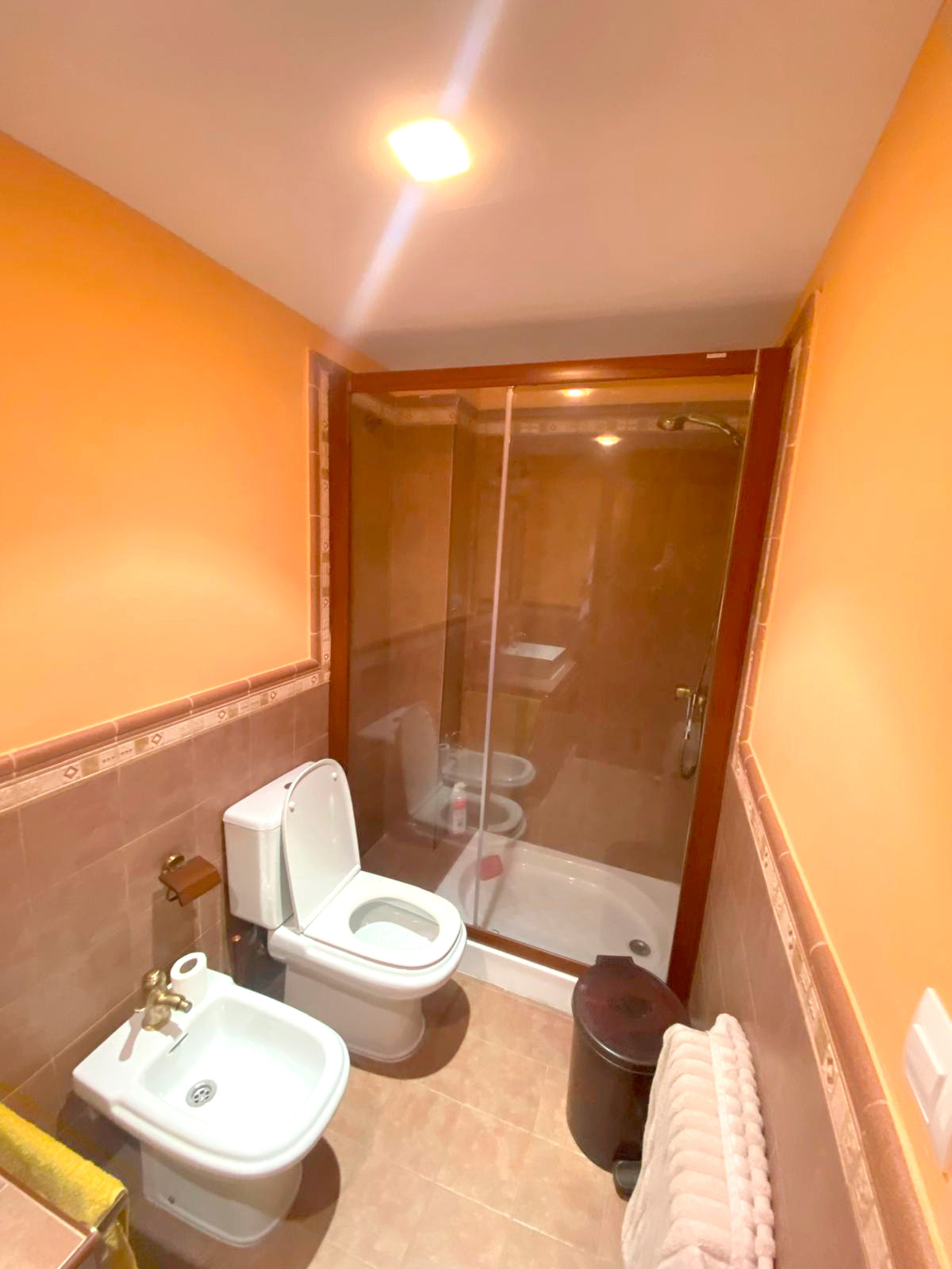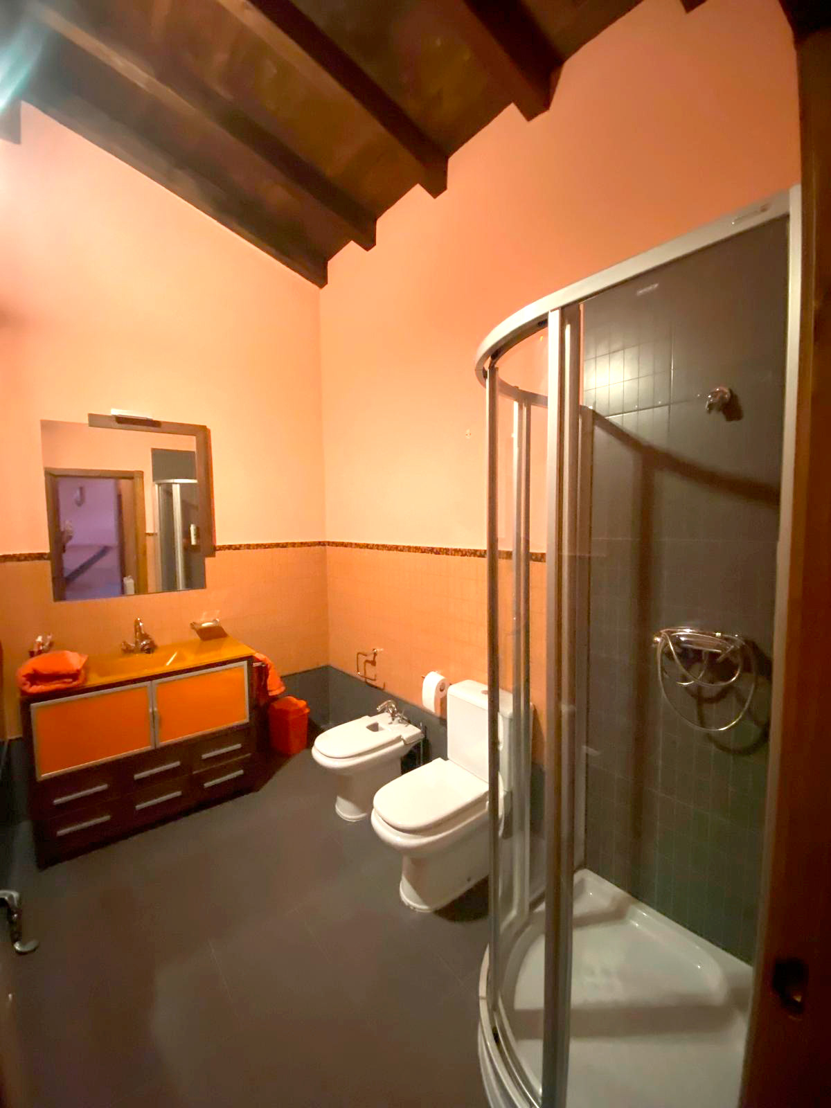 En la segunda planta, encontramos una cuidada zona de descanso compuesta por tres amplias habitaciones, todas ellas con armarios empotrados realizados en madera de castaño, aportando un carácter noble y atemporal. Los suelos de tarima y los altos techos revestidos también en madera de castaño refuerzan la sensación de calidez y amplitud. Esta planta dispone además de dos baños completos, diseñados con gusto y en perfecto estado, prácticamente a estrenar.