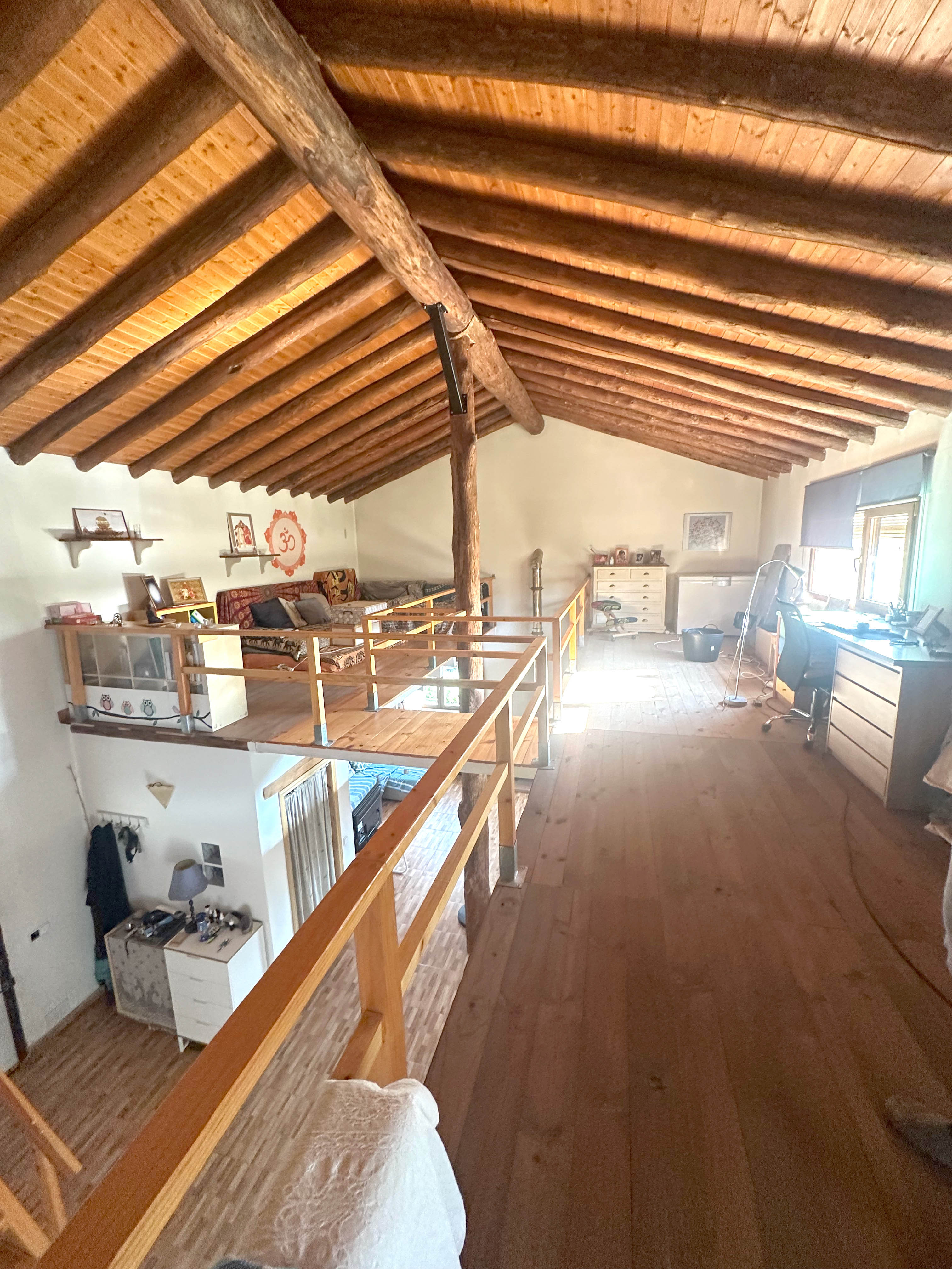 En la planta primera encontramos un espacio completamente diáfano, con una preciosa doble altura abierta hacia la planta inferior, que aporta amplitud, luminosidad y un aire arquitectónico muy atractivo. Se trata de una estancia versátil, ideal como zona de descanso, despacho, estudio o incluso como espacio adicional para invitados.